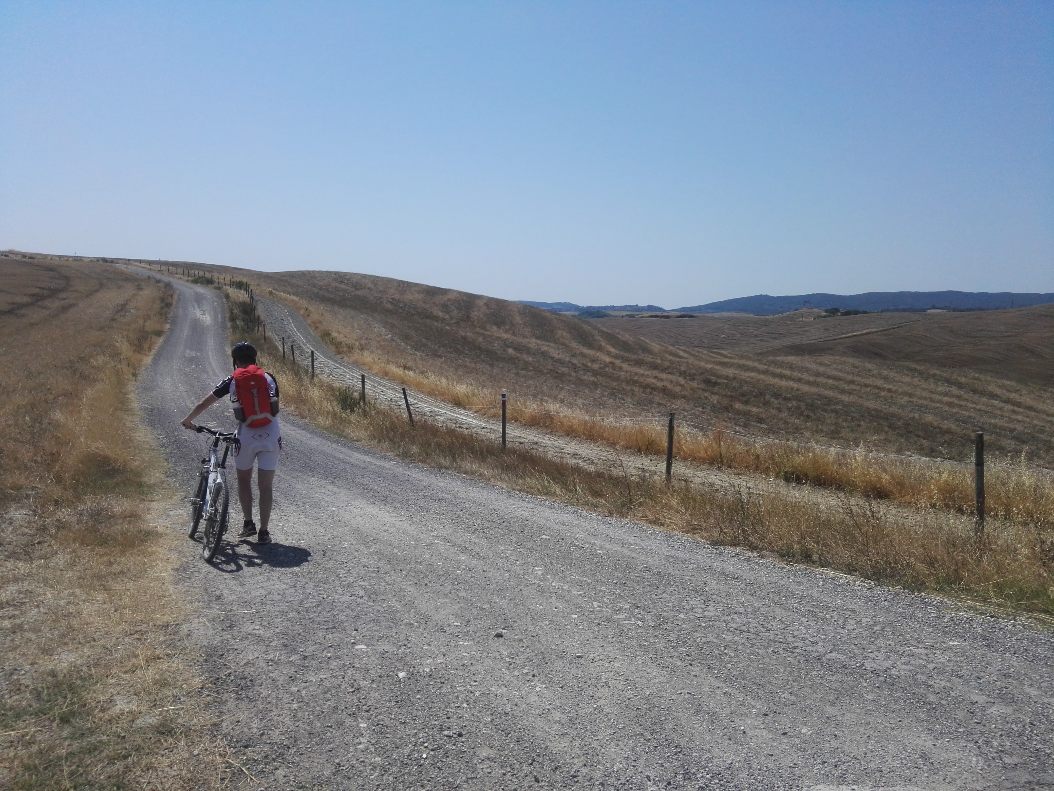 Verso le 15,30 decidiamo di ripartire sotto un sole abbastanza cocente. fa caldo e decidiamo di proseguire piano piano con obbiettivo di arrivivare alla meravigliosa San Giminiano entro sera e quindi con altri 40 chilometri da pedalare.