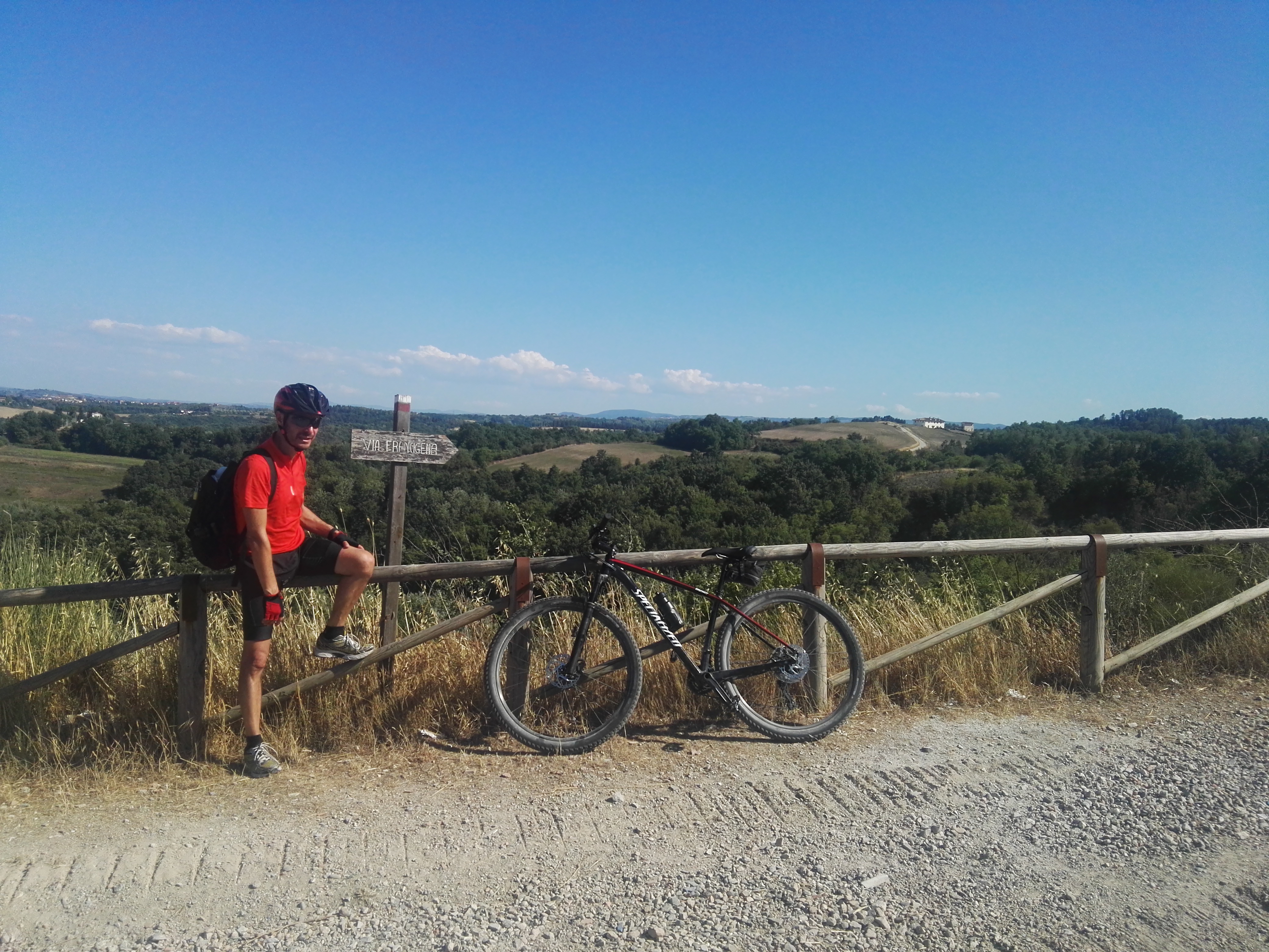 Pronti! ripartiamo per la seconda tappa del nostro viaggio in mtb sula VIA FRANCIGENA. Esattamente dopo un anno, Io e Tommaso ci apprestiamo a ripercorrere i sentieri storici dell’antica via che nel medioevo univa Canterbury a Roma. Lo scorso anno partendo da Pavia tra pianure, colline, fiumi e monti eravamo giunti fino al mare più precisamente a Marina di Massa percorrendo ben 264 chilometri.