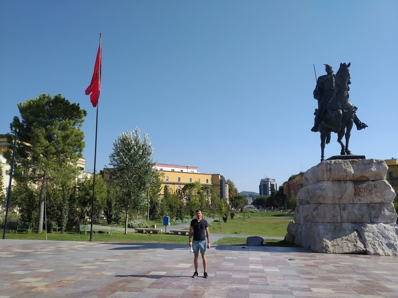 Tirana è una disordinata e chiassosa grande città, colma di traffico e delirio. Mi sembra di essere finito in una terra di nessuno, dove ognuno può fare ciò che vuole! Giungiamo in albergo sito nel quartiere più elegante di Tirana. Il resto della città è caratterizzata da un elegante e ordinato degrado caratteristico delle città dell’est europa. Prepariamo lo zainetto intenti a visitare il centro della città, che per mia fortuna (data la mia grande passione) è colma di storia. Entro nella piazza dal nome importante come quello di Skanderberg. <<Non vi porto libertà: l’ho trovata qui, tra voi.>> Questa è la frase che disse l’impavido Giorgio Castriota detto “Skanderberg” al popolo albanese dopo aver respinto e vinto gli invasori turchi ottomani. Qui, è venerato come eroe nazionale. Le sue gesta ispirarono nei secoli le rapsodie, la letteratura, le arti e mantennero vivo negli albanesi lo spirito della libertà.