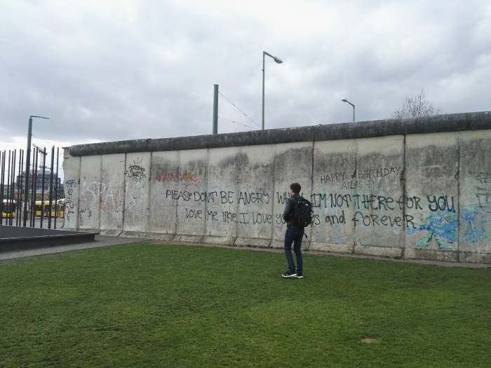 Resti del muro sono presenti in gran parte della città ed è giusto che siano ancora visibili. Penso che le generazioni future debbano sapere cosa sia accaduto qui in passato, in modo che questo scempio non accada mai più. Venire qua e pensare che fino a pochi anni fa questa città venne divisa da un muro per i capricci di guerra fa rabbrividire. Un muro lo si immagina come un qualcosa di protettivo ma non di divisorio. Ora vedere il muro crollato mi fa sentire sollevato. Nonostante il suo passato burrascoso Berlino è una delle città più vive d’europa. Non bellissima ma parecchio affascinante e molto malinconica. La storia dell’umanità è passata da qui con le sue sfaccettature grigie che ora si stanno colorando, dipingendo di vita le pareti di cemento del suo muro.